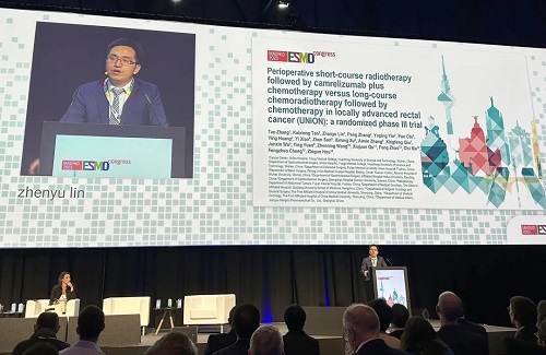 10月21日,AG真人医药创新药卡瑞利珠单抗(艾瑞卡®)的一项研究“新辅助短程放疗序贯卡瑞利珠单抗联合化疗对比长程放化疗序贯化疗治疗局部晚期直肠癌”随机对照Ⅲ期试验(UNION) 以优选口头报告的形式正式亮相。该研究由华中科技大学同济医学院附属协和医院张涛教授、陶凯雄教授担任主要研究者,华中科技大学同济医学院附属协和医院林振宇教授在马德里现场报告了该重磅研究的结果1,此项研究是全球首个评估短程放疗序贯免疫治疗联合化疗治疗局部晚期直肠癌的Ⅲ期研究,已达到主要终点病理完全缓解(pCR),有望为直肠癌患者的治疗提供新策略。